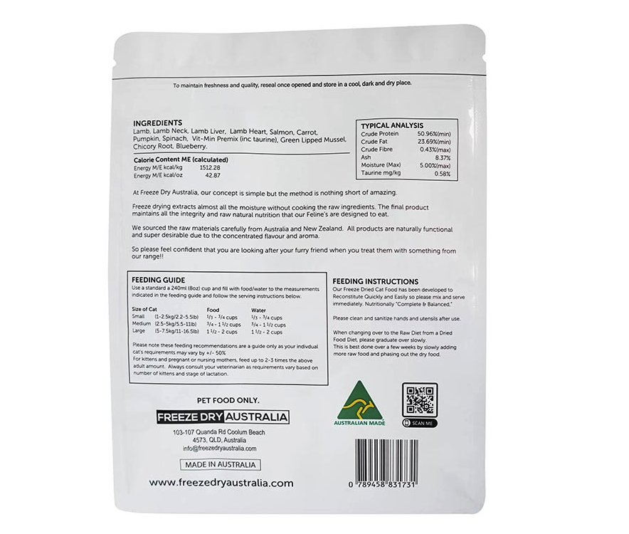 Freeze Dry Australia 100% Raw Cat Food – Lamb