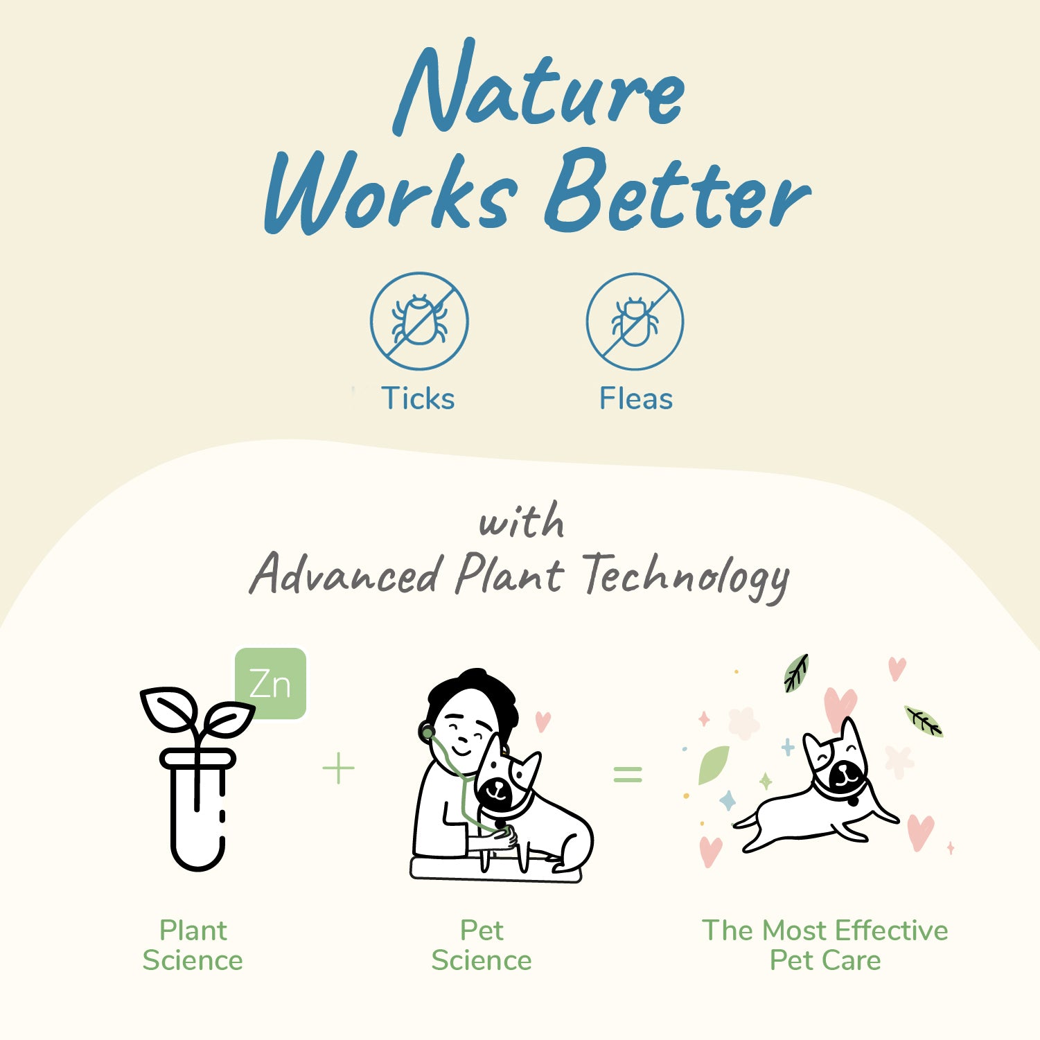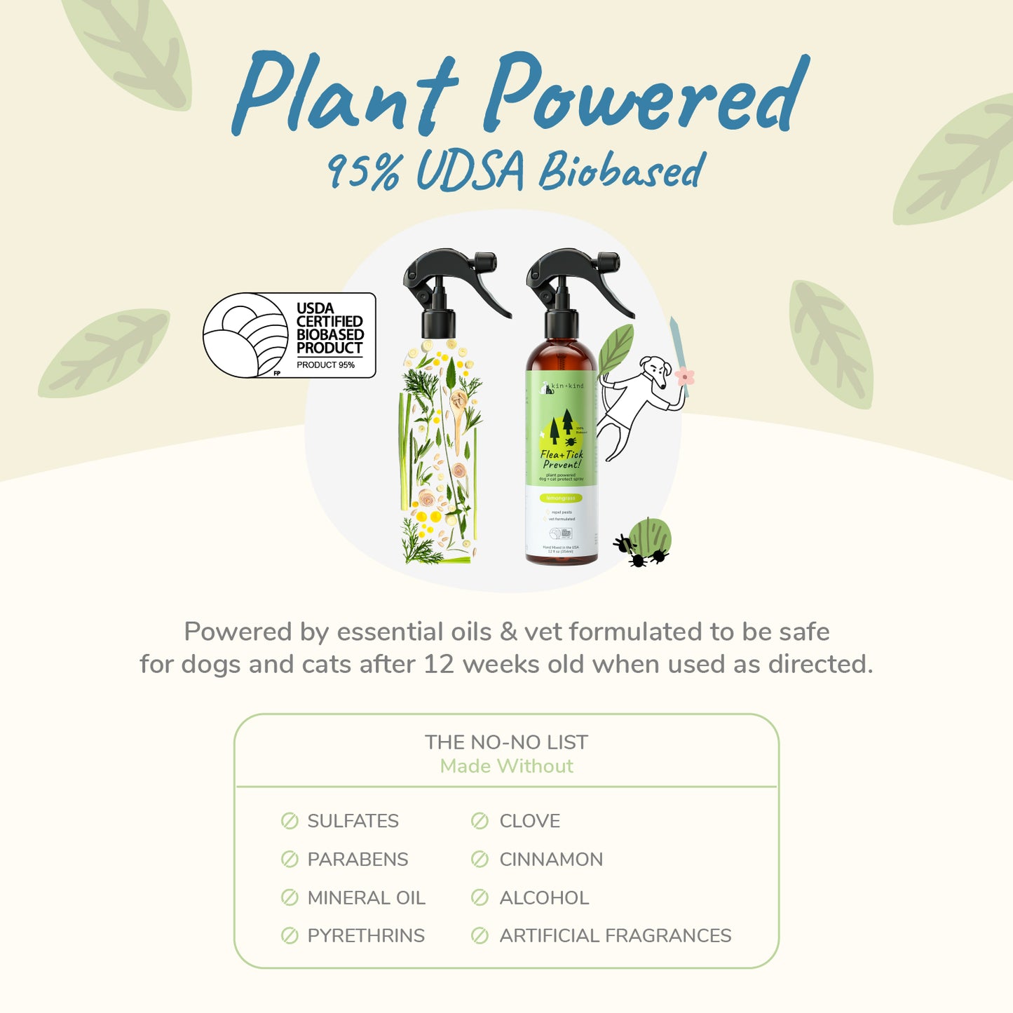 Plant Powered Flea+Tick Control. Our vet-formulated products use plant-based ingredients for happier pets and a healthier planet. Each ingredient, including every essential oil, is vet approved to ensure safe concentrations for your pet when used as directed. So apply with confidence!