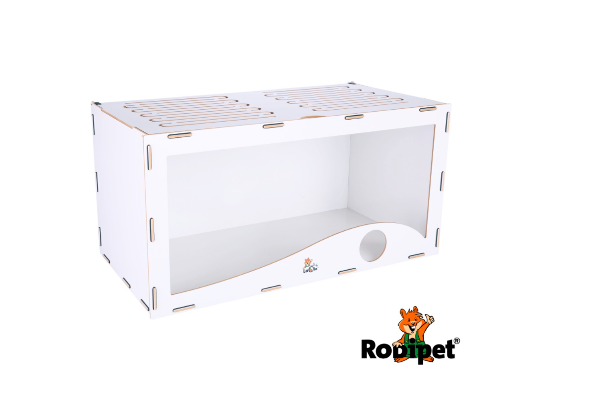 You can watch your little friend through the huge window in the front, while the sides and top are opaque to give your pet a comfortable and sheltered feeling. The high-quality MDF boards of this nagarium are made in Germany from locally grown wood and meet all E1 emissions requirements, making the LaOla® nagarium a sustainable and eco-friendly alternative to a traditional hamster cage.